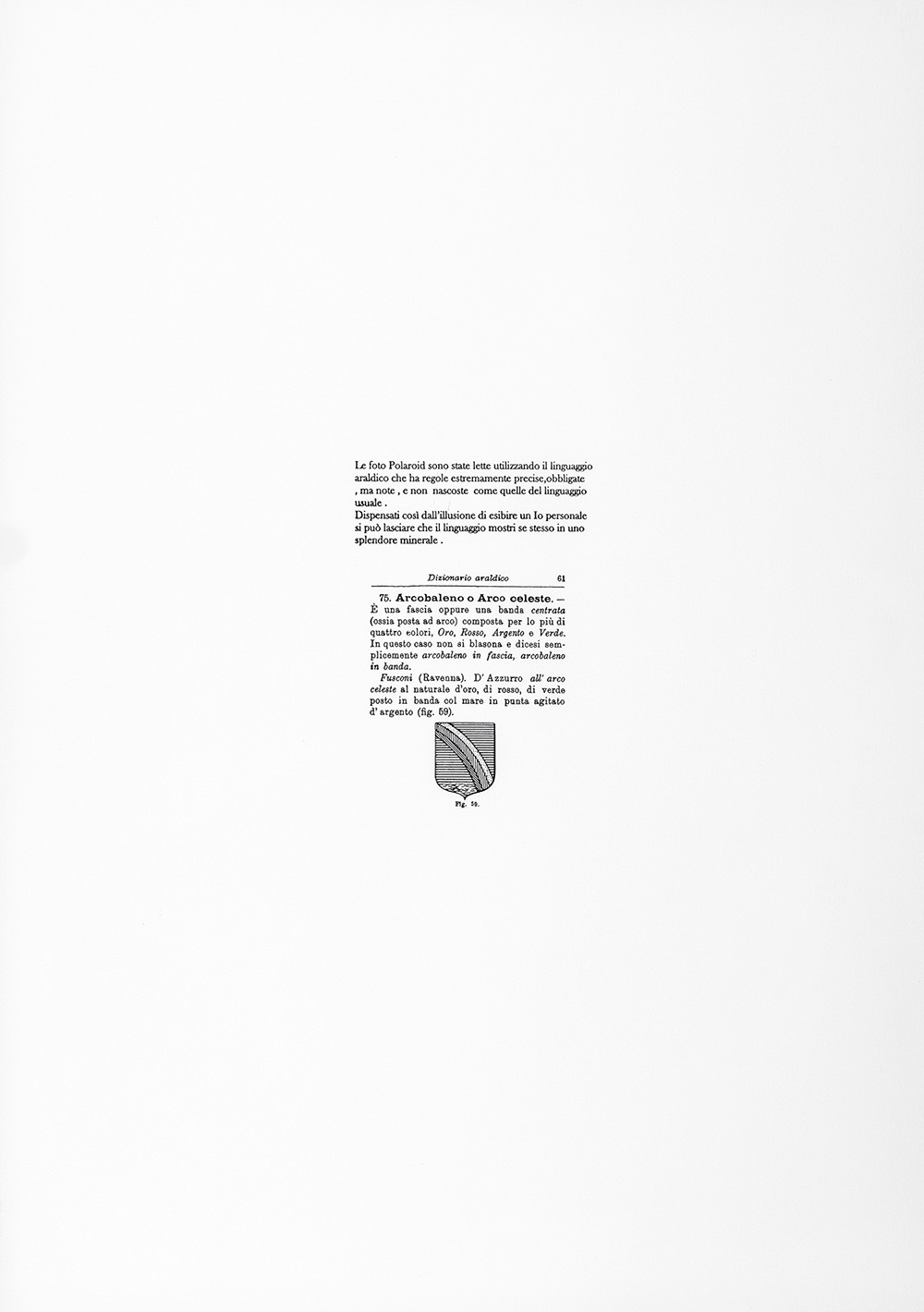 FRANCO VACCARI 1936 Araldica, 1977 Dittico, polaroid su carta e carta stampata, cm. 50 x 70 cad. Firmato e datato in basso Autentica dell'artista su fotografia PUBBLICAZIONI: "Franco Vaccari - Diramazioni", catalogo mostra Galleria Mazzoli (maggio giugno 2010), Modena, 2010 Prov. Galleria Michela Rizzo, Venezia Prov. Collezione Privata