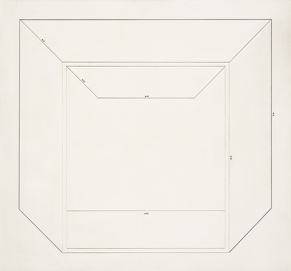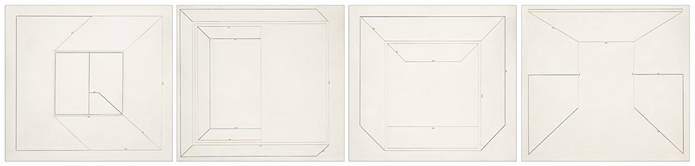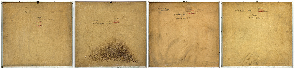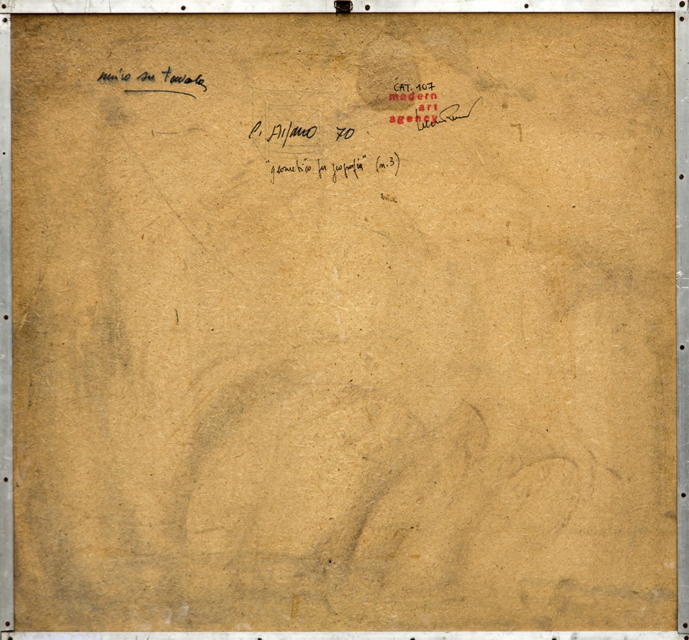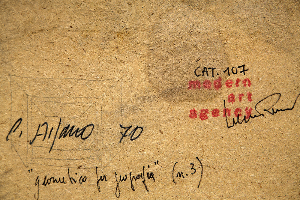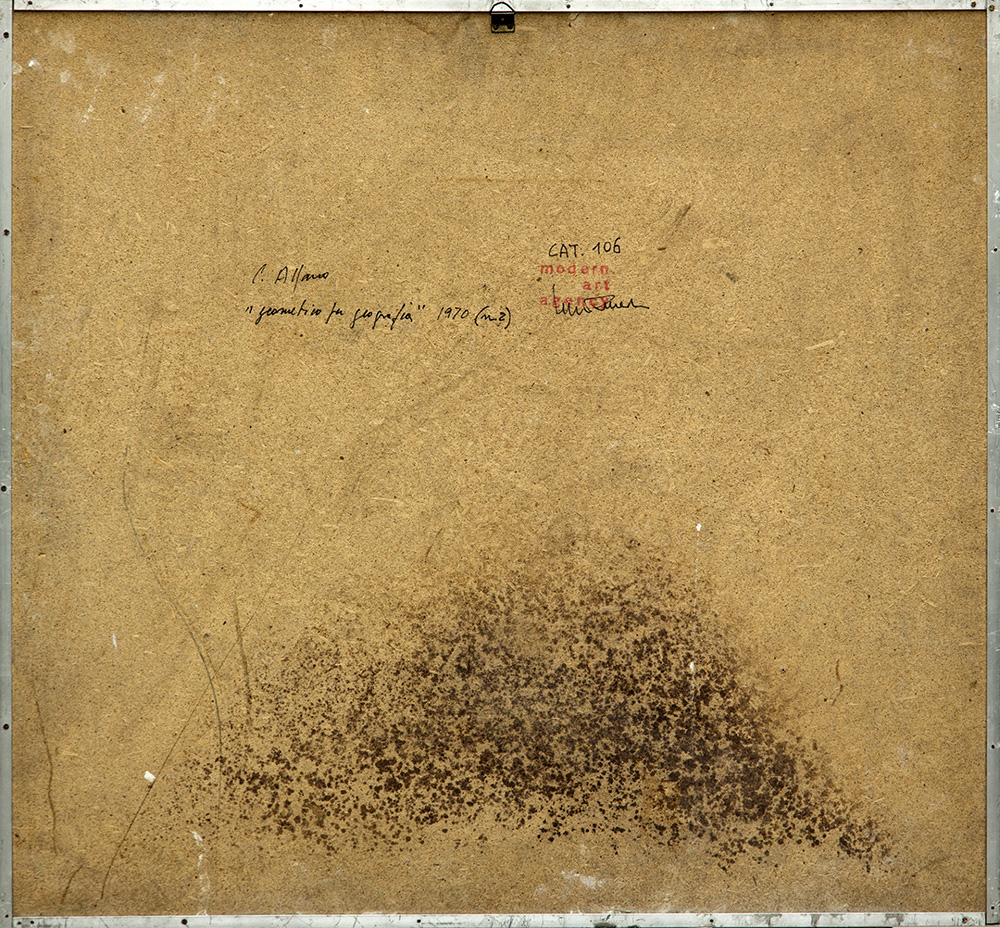CARLO ALFANO 1932 - 1990 Geometrico per geografia 1-2-3-4, 1970 Tecnica mista e intarsio su quattro tavole, cm. 65 x 280 (cm. 65 x 70 cad.) Firmato e datato sul retro Timbro Modern Art Agency, Napoli sul retro, con firma di Lucio Amelio ESPOSIZIONI: "Carlo Alfano - soggetto spazio oggetto" Mart - Museo di Arte Moderna di Trento e Rovereto, 05 novembre 2017 - 22 aprile 2018 PUBBLICAZIONI: “Carlo Alfano - soggetto spazio soggetto”, catalogo mostra Mart - Museo di Arte Moderna di Trento e Rovereto, 2017, pp. 262 - 263 Prov. Collezione Privata