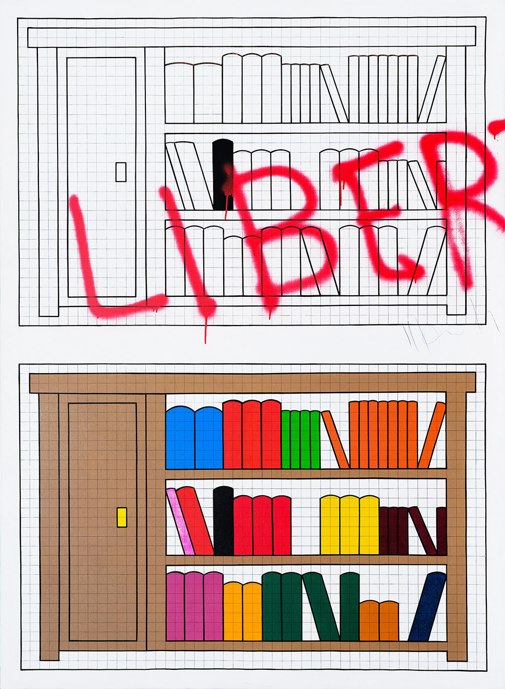 ALDO MONDINO 1938 - 2005 Libertà, anni '60 Olio e pittura spray su tela, cm. 180 x 130 Firmata in centro a destra Certificato di Autenticità a cura dell’Archivio Aldo Mondino Prov. Galleria L’Uomo e l’arte s.p.a, Milano Prov. Collezione Privata
