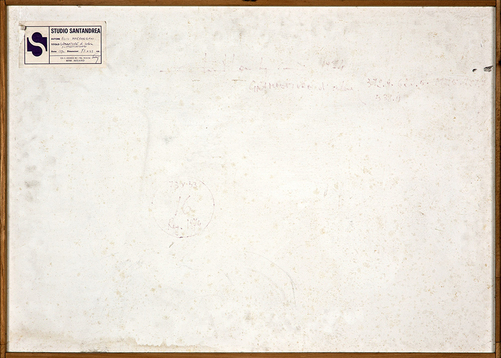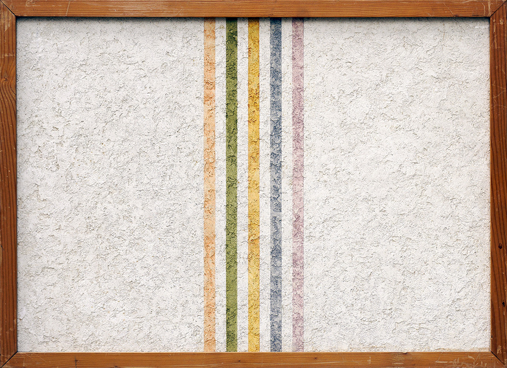 ELIO MARCHEGIANI 1929 Grammature di colore, 1974 Grammature di colore su intonaco, cm. 53 x 73 Firmato e datato sul retro Etichetta Studio Santandrea, Milano sul retro Prov. Collezione Privata