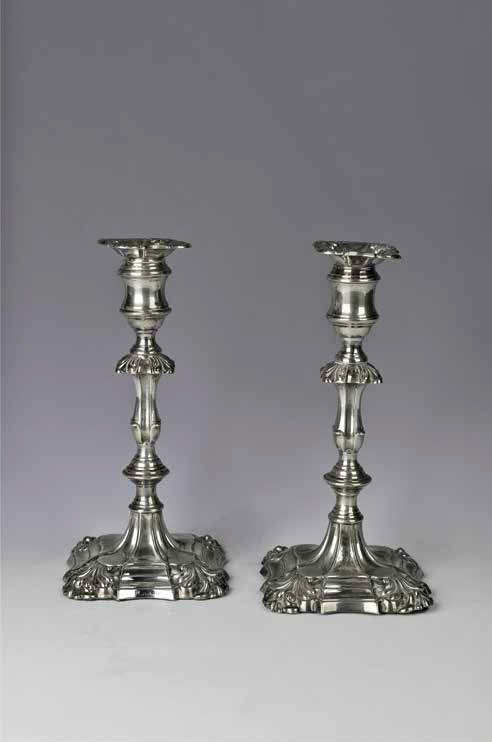 Coppia di candelieri in argento, Sheffield, 1864, John Knowles & Son, altezza cm 22,5. Provenienza: Roma, Collezione Bulgari (etichetta al verso)