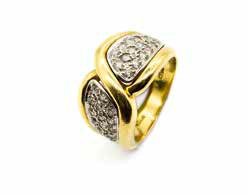 Anello in oro giallo e bianco, gr. 9,6, con diamanti.