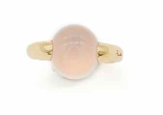Anello Pomellato in oro giallo e quarzo rosa, gr. 9,9.