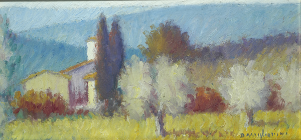 Dino Migliorini (Rignano sull'Arno, 1907 - Firenze, 2005) Campagna Olio su faesite, cm. 25x50 Firma in basso a destra. € 250/350
