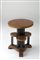 Small Déco-style pedestal with upper shelf and three circular smaller shelves. Veneered and ebonized structure and glass. 1930s. (h 42 cm.; d 35 cm.) (defects and restorations)