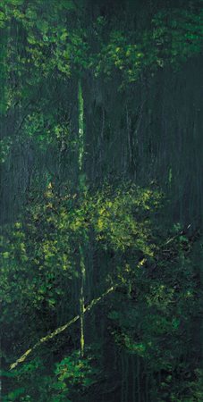 CARLO MATTIOLI Modena 08/05/1911 - Parma 12/07/1994 - Nel bosco, olio su tela cm. 120x60, firma in basso a sinistra, titolo, firma e timbro della Galleria Poleschi al retro, dichiarazione d'autenticità dell'artista su foto, pubblicato sul Catalogo "Il Paesaggio Italiano Dalla Secessione ai nostri giorni" 90 opere di 63 maestri del XX secolo, a cura della Galleria la Casa Dell'Arte (Sasso Marconi - Bologna) alla pagina 54.