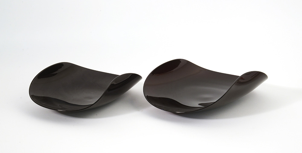 Venini Lotto di due centrotavola in vetro ametista scuro. Murano, 1989....