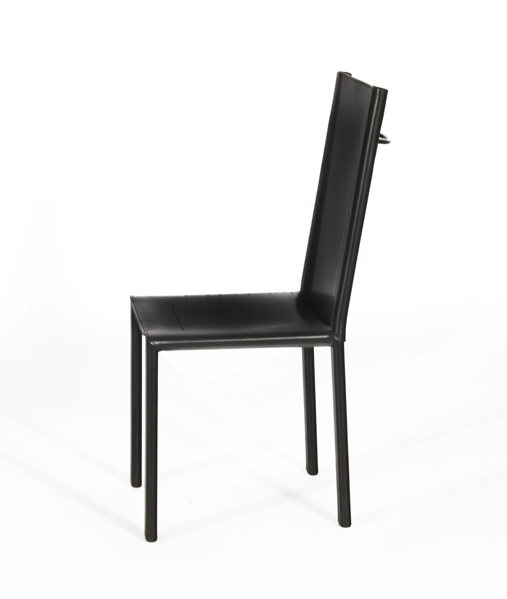 * Sedia modello "Carol". Produzione Matteo Grassi, Italia, 1993. Struttura in metallo verniciato nero e rivestimento in cuoio nero. (cm 45x95x45)