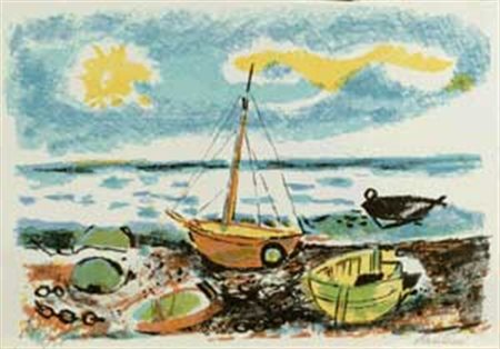 Enrico Paulucci (Genova, 1901 - Torino, 1999) Marina Litografia, mm 350x500; es. 44/70 Firma in basso a destra,tiratura in basso a sinistra. € 0/0