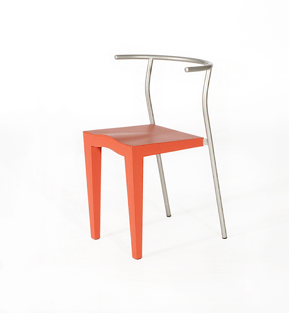 * Seduta modello "Dr. Globe". Produzione Kartell, Milano, 1989. Schienale in acciaio e struttura in composto plastico color corallo. (cm 48x73x47,5)