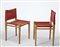 Coppia di sedie modello "Oasis". Produzione Zanotta, Italia, anni '70. Legno di rovere massello con seduta e schienale in tela rossa. Marcate a fuoco. (cm 43x76x46) (difetti)