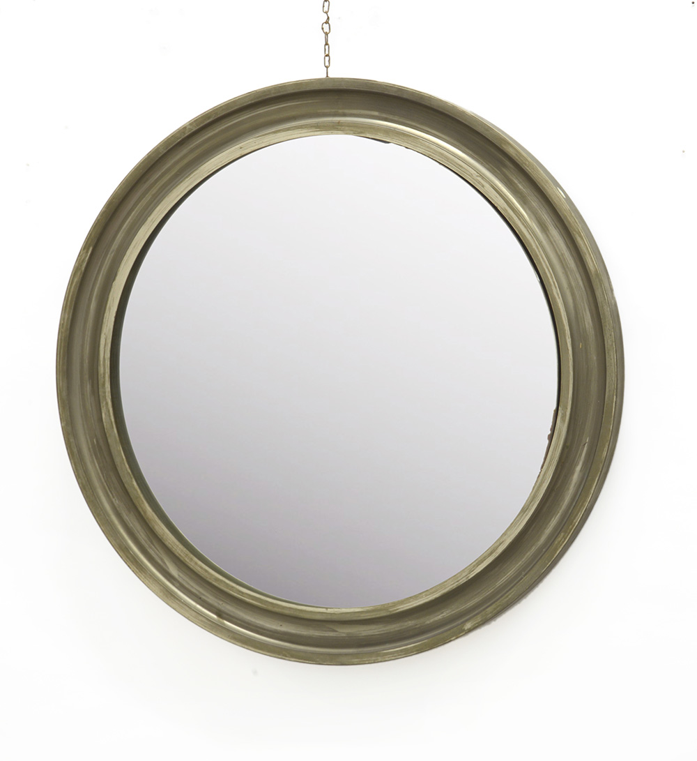 Specchio con cornice tonda. Produzione Artemide, Milano, anni '70. Ottone nichelato. (d cm 62) (lievi difetti)