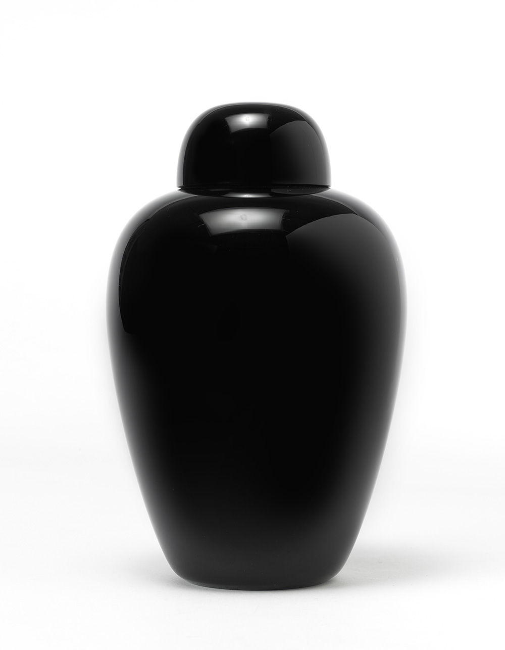 Vaso con coperchio della serie "Cinesi". Venini, Murano, 1989. Vetro incamiciato ametista scuro. Disegno 513.4 del Catalogo Verde Venini. Firmato a punta sotto la base "Venini 89". (h cm 31)