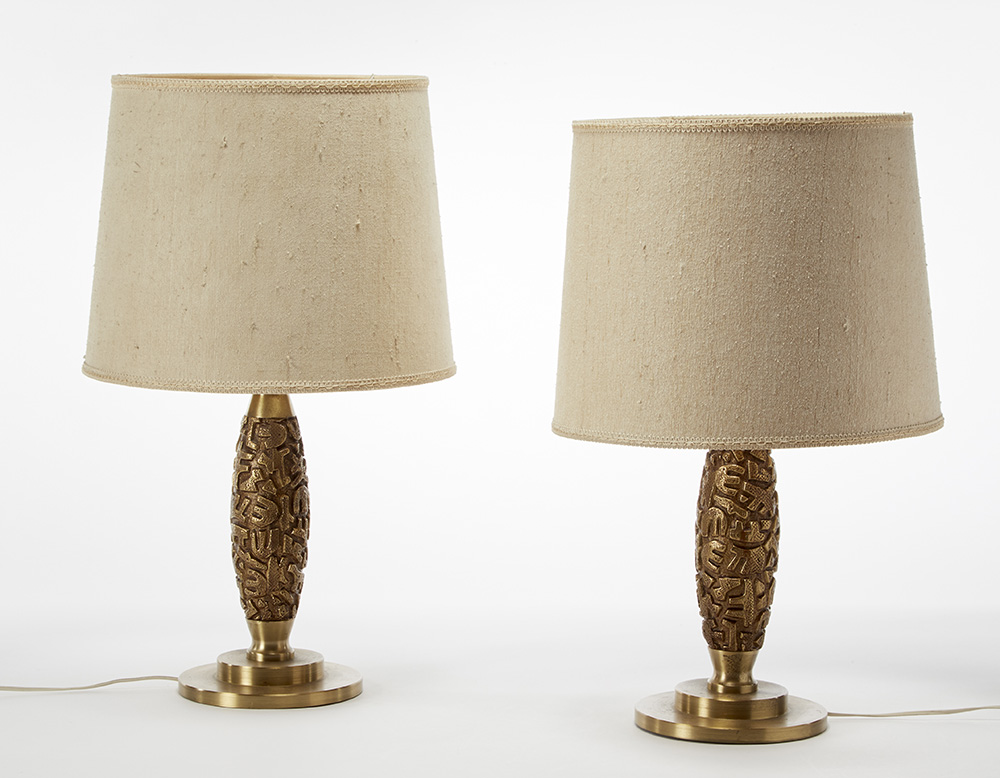 Two table lamps. Execution by Frigerio di Desio, Italy, 1960s. Brass. (h 36 cm.)
