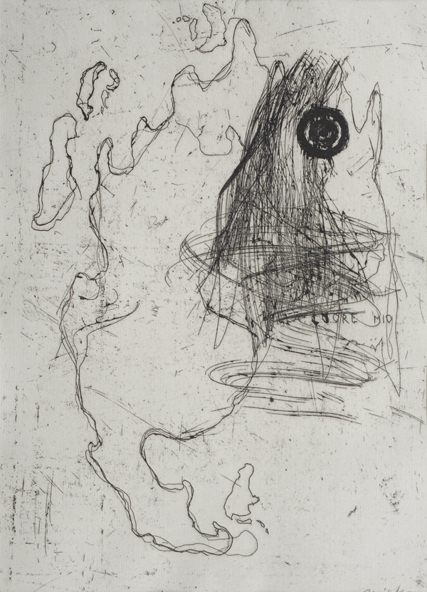 Piero Pizzi Cannella (Roma, 1955) Bella cuore mio Acquaforte, mm. 350x250; es. pa Firma in basso a destra. Tiratura in basso a sinistra. € 170/270
