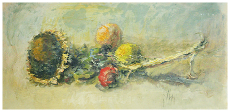 FEDERICO CRESCI Livorno 1941 Girasole / Sentinelle dell’invisibile 2003 Olio su cartone 20,7 x 44,7. Firma in b. a d.; sul verso firme, titolo e data. B.A.: 50