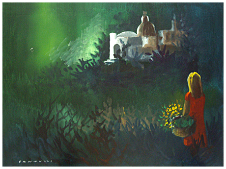 ELIANO FANTUZZI Modena 1909 – Verona 1987 Senza titolo Olio su tela 60 x 80. Firma in b. a s.; sul verso num. archivio e firma + timbro “Collina Livio, Bologna”. B.A.: 100