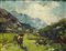Mario Pobbiati (Milano, 1857 - Milano, 1956) Pascolo in montagna Olio su...