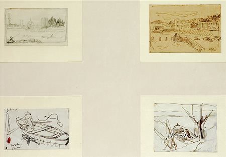 Silvio Polloni (Firenze, 1888 - 1972) Quattro piccoli bozzetti Inchiostro,...