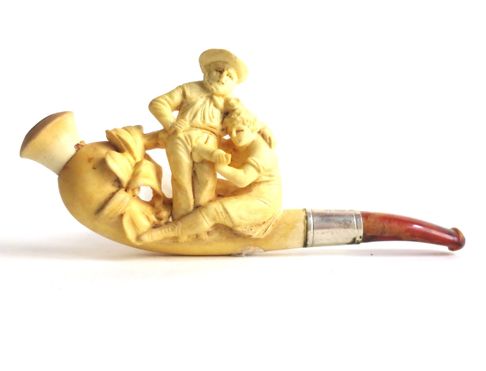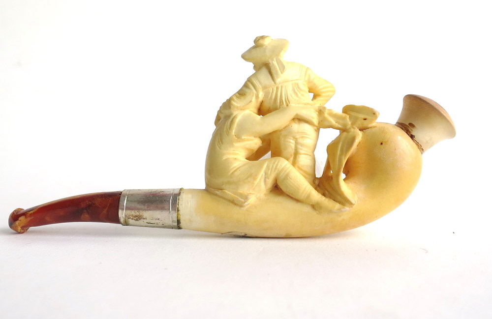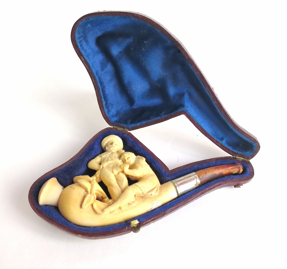 PIPA In schiuma di mare in custodia " Scena erotica" - cm 12.2 x 5.5 - sec. XIX