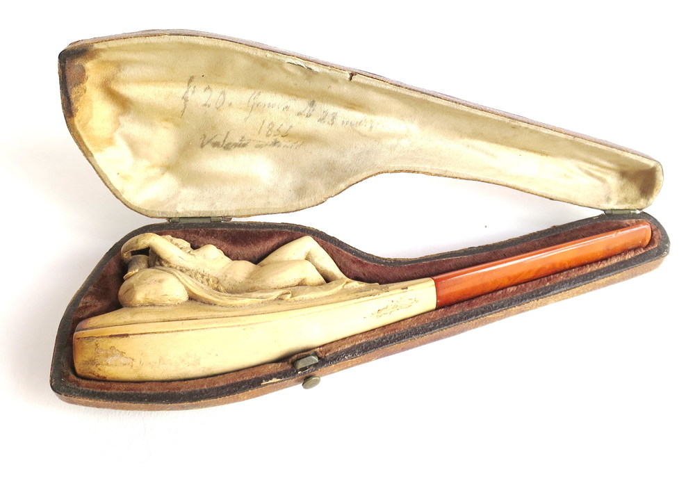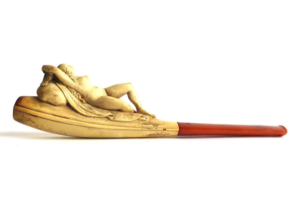 PIPA In schiuma di mare in custodia "Donna sdraiata" - cm 16 x 4.2 - sec. XIX