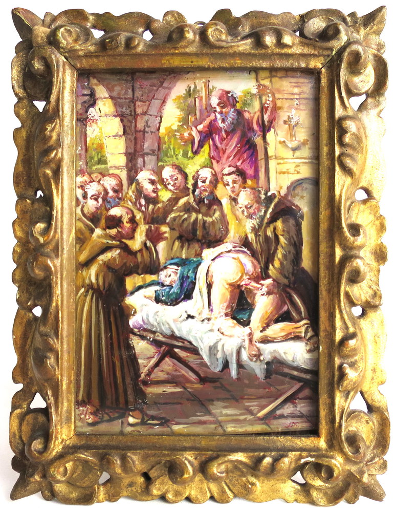 MINIATURA "Scena erotica" - Olio su tavola - cm 9 x 13.4 - 1920 ca