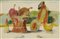 Antonio Possenti (Lucca, 1933) Composizione con frutti e figura Tecnica mista su cartone, cm. 19,5x29,5 Firma in basso a sinistra. Sul verso: firma e dedica. € 300/500