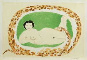 Antonio Possenti (Lucca, 1933) Donna con serpente Litografia, mm 35x50; es. p.a. Firma in basso a destra, numero in basso a sinistra. € 0/0