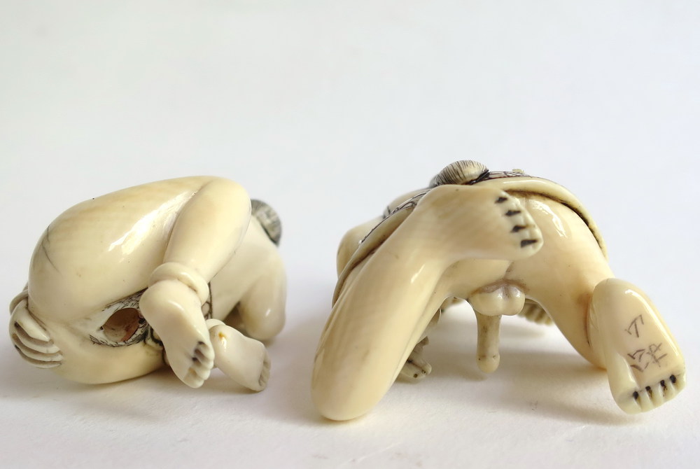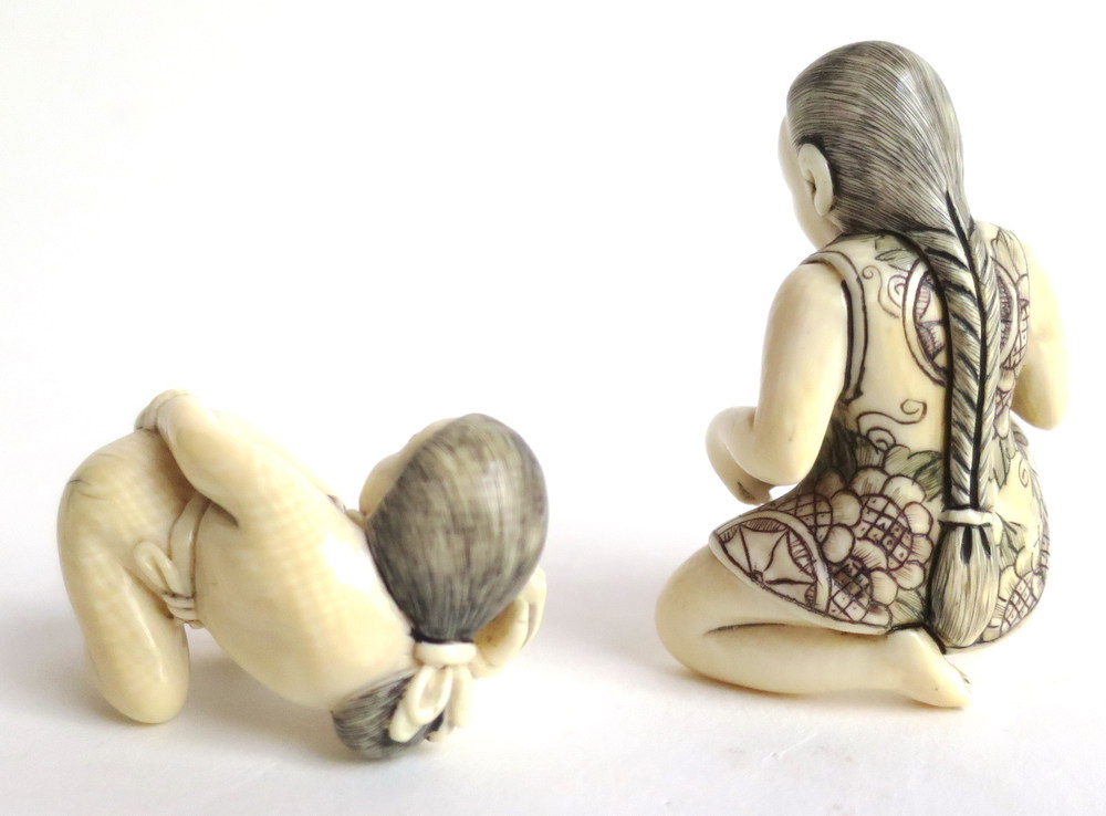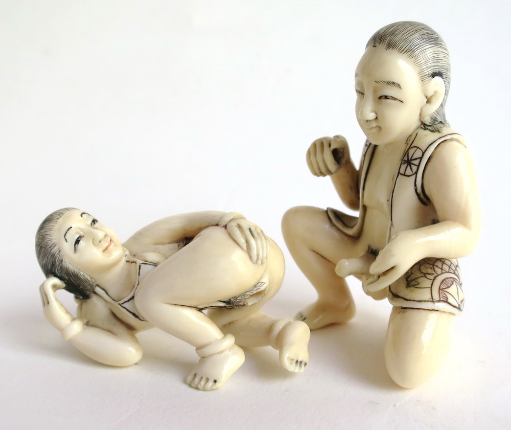 STATUE In avorio "Scena erotica" - Firmato - 2 pezzi - cm 6 x 7 - Cina