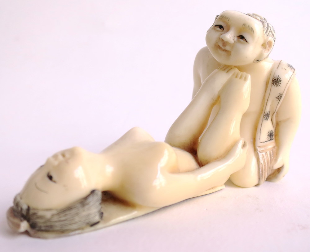 Lot 52 | STATUE In avorio "Scena erotica" - Firmato - 2 pezzi - cm 5 x 8.5 - Cina