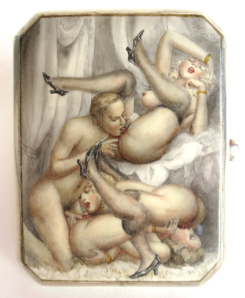 PORTASIGARETTE In argento "Scena erotica" - cm 7 x 9