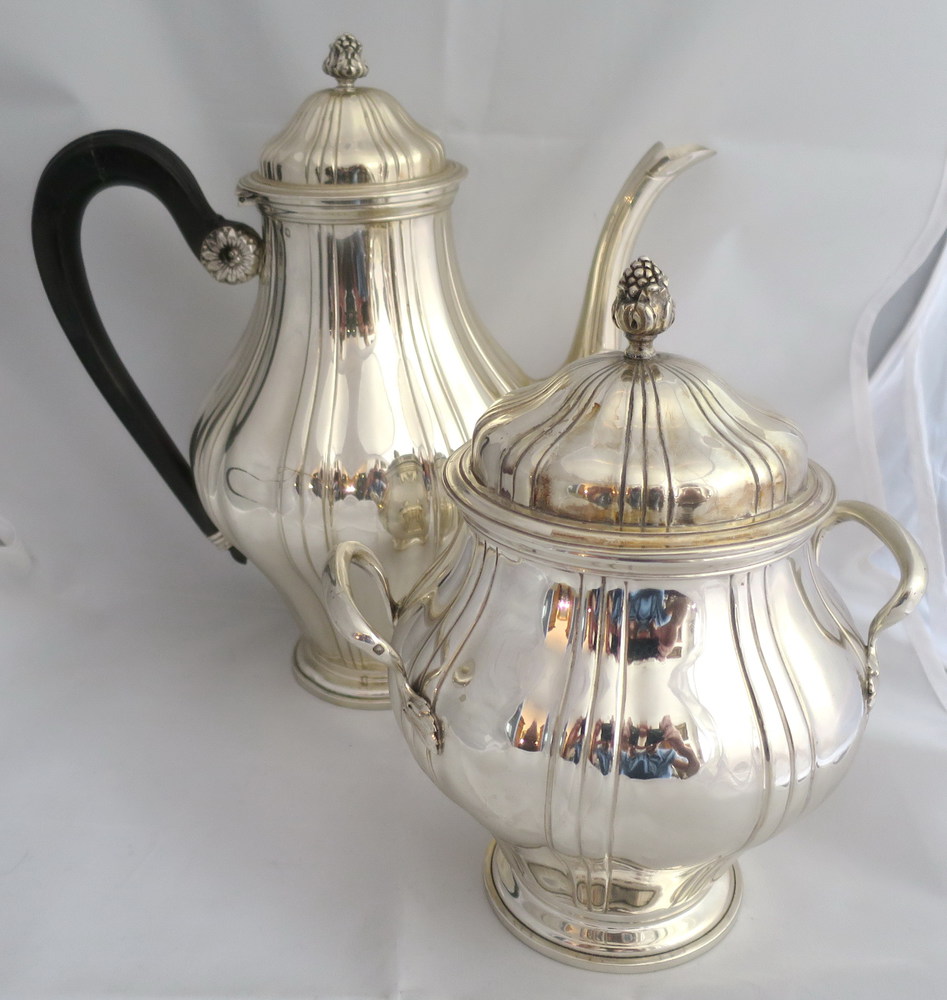 SERVIZIO DA TE' in argento composto da caffettiera e zuccheriera. Francia...