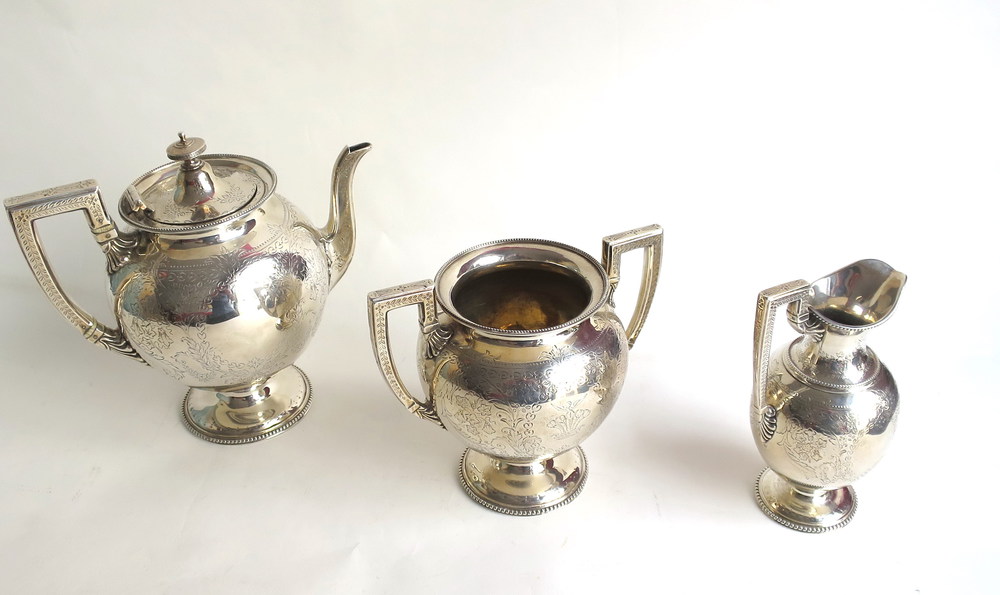 SERVIZIO Da tè in argento compoeto da teiera, zuccheriera e lattiera Londra 1870 argentiere Thomas Whitehouse g. 1360