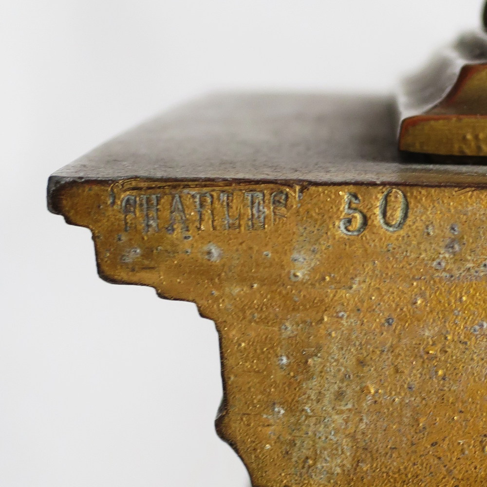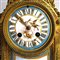 OROLOGIO da tavolo in bronzo dorato. Plache equadrante in porcellana dipinte. H. cm 43 Francia XIX sec. Difetti