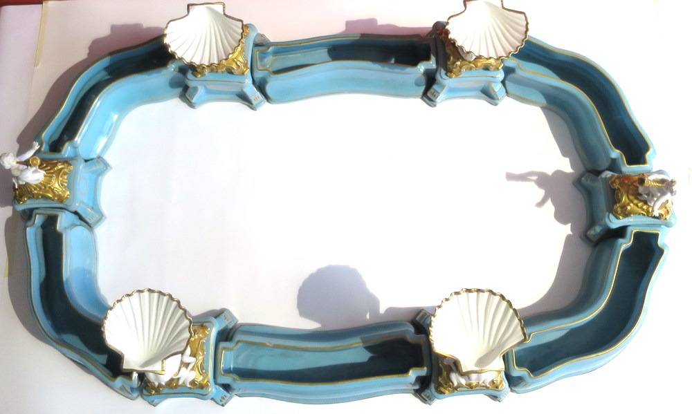 GINORI grande giardinetto manifattura italiana Ginori fine XIX sec. composto da 12 elementi in ceramica policroma finemente decorata marchio firma e codici sotto le basi cm 23 x 95 x 45