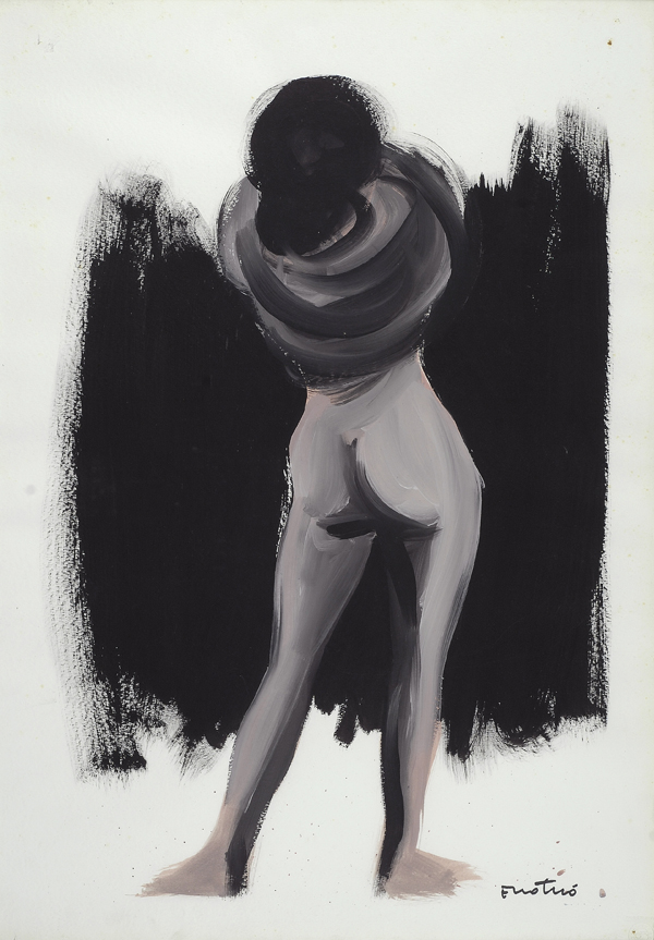Enotrio Pugliese (Buenos Aires, 1920 - Pizzo Calabro, 1989) Nudo di spalle Olio su carta, cm. 73x50 Firma in basso a destra. € 300/500