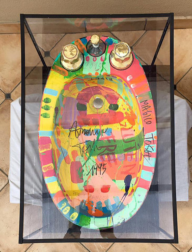 TOSH Bidet e acrilico "Wash ass and other" - sotto teca di plexiglass con...