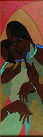 Alfio Rapisardi (Firenze, 1929) Figure Tecnica mista su tavola, cm. 118x37 Firma in basso a destra. € 600/800