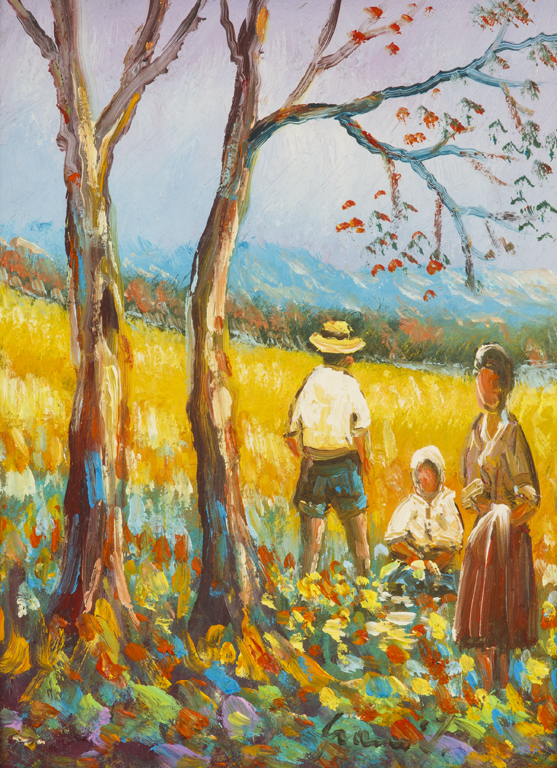 FRANCESCO GRASSI (1940)Ora di siesta nei campi d'estateOlio su cartonecm...