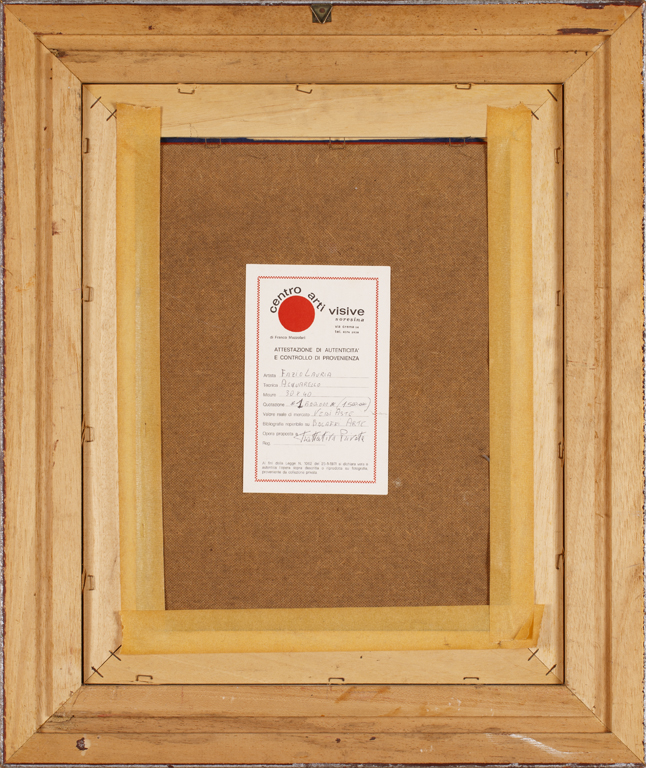 Certificato di autenticità a cura del Centro Arti Visive di Franco Mazzolari (CR) applicato al retro