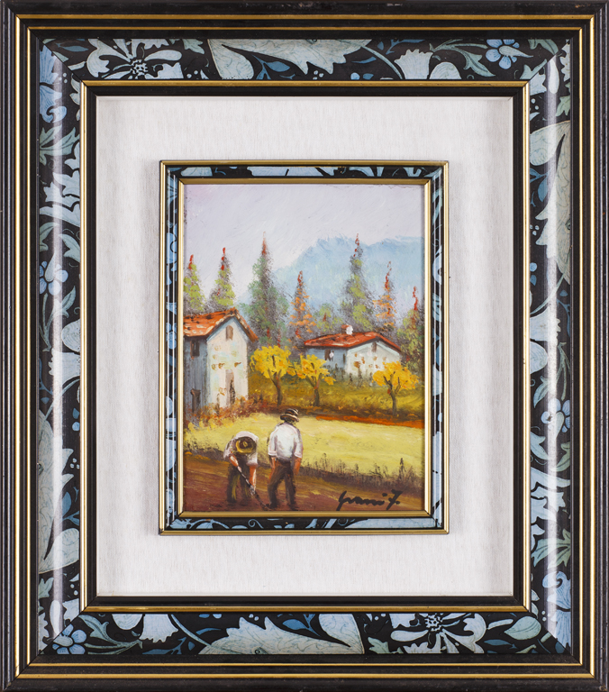 Lot 31 | FRANCESCO GRASSI (1940)Raccolta di patate in BrianzaOlio su cartonecm...