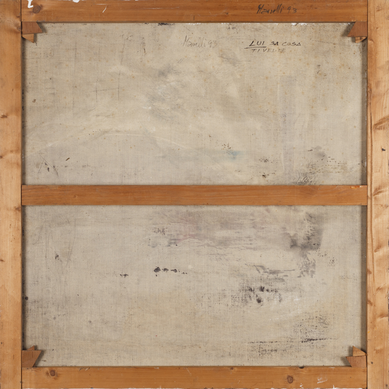 ENRICO MANELLI (1946)Lui sa cosa ti vende, 1993Tecnica mista su telacm...