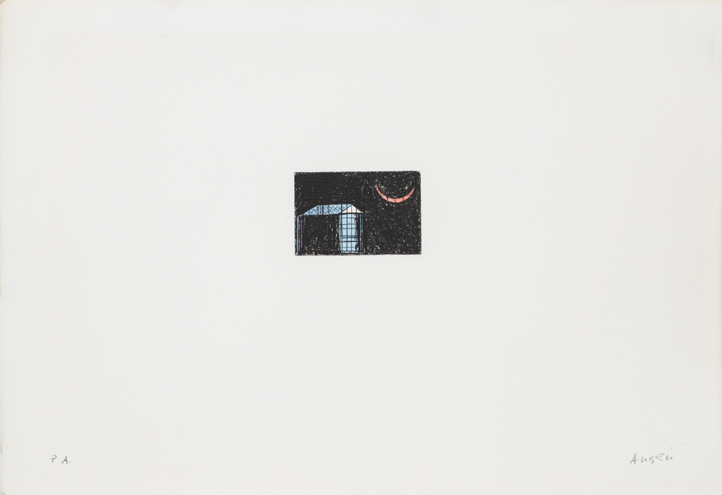FRANCO ANGELI (1935-1988)La Casa e La LunaIncisione colorata a manoLastra cm...