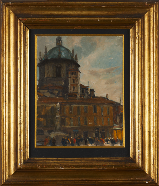 BERNARDO GENTILI (1900-1963)Piazza Vetra, 1936Olio su cartone telatocm...