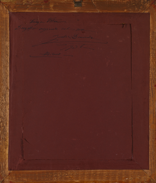 Firma, titolo, datazione e località (Milano) al retro del cartone protettivo