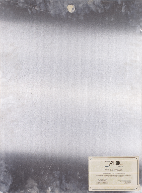 GETULIO ALVIANI (1939-2018)Testura in nero, 1973Serigrafia su alluminiocm...