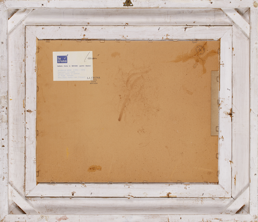 Etichetta e timbro della Galleria d'Arte La Cruna (NO) al retro