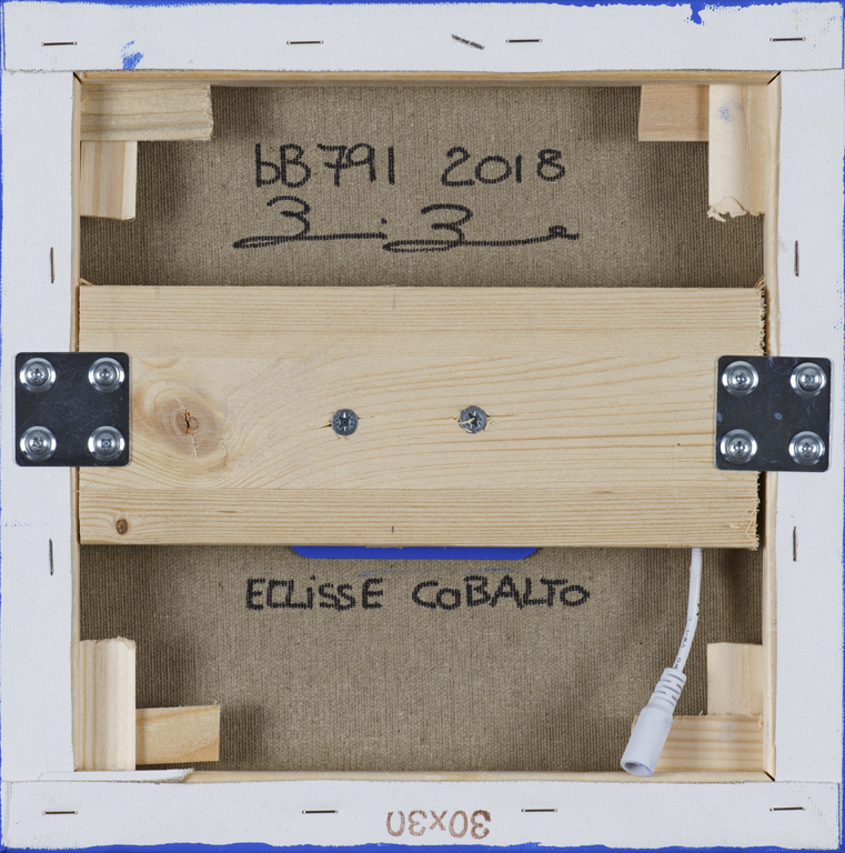 BRUNO BANI (1964)Eclissi Cobalto, 2018Acrilici e led su telacm 30x30x8Firma,...