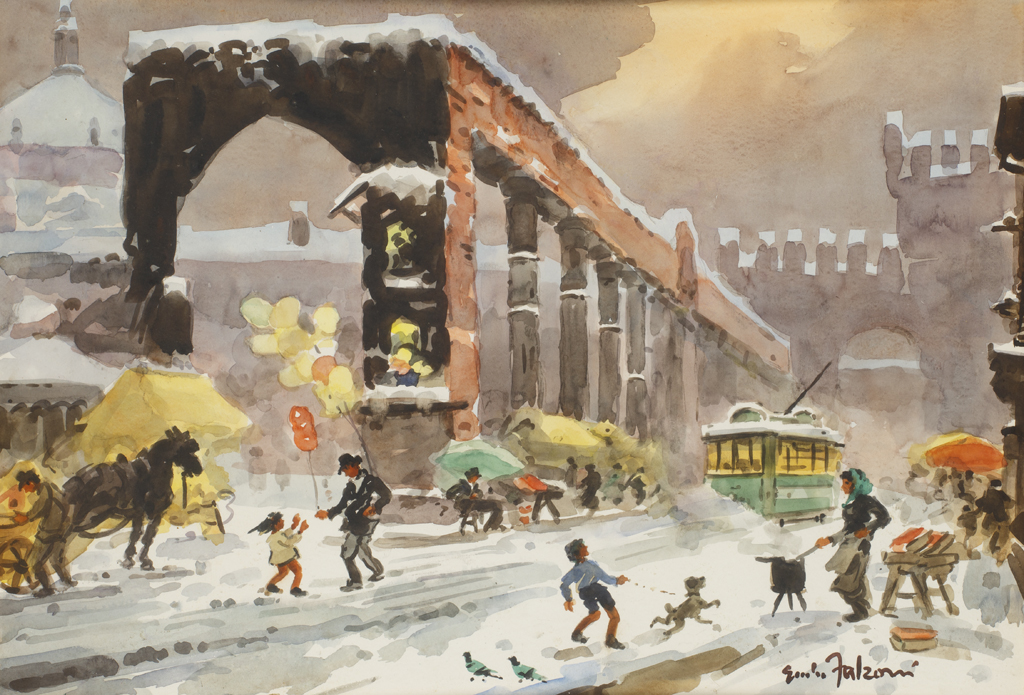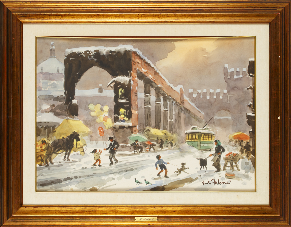GIULIO FALZONI (1900-1978)Vecchia Milano: le Colonne di San LorenzoAcquerello...