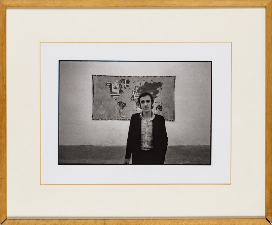 Lot 304 | GIORGIO E. COLOMBO (1945)Alighiero Boetti con mappamondoFotografia in bianco...